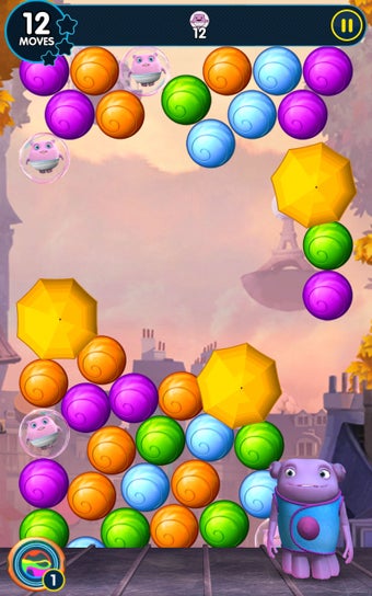 Existen además diversos objetivos repartidos por los 110 niveles de HOME: Boov Pop. A veces debes eliminar un determinado número de burbujas de un color concreto en un número limitado de movimientos. En otras ocasiones debes salvar a tus aliados, atrapados en burbujas. De repente aparecerán enemigos o nuevos obstáculos que te obligarán a actualizar tu estrategia. Exacto, seguro que estás pensando en Bubble Witch Saga 2.